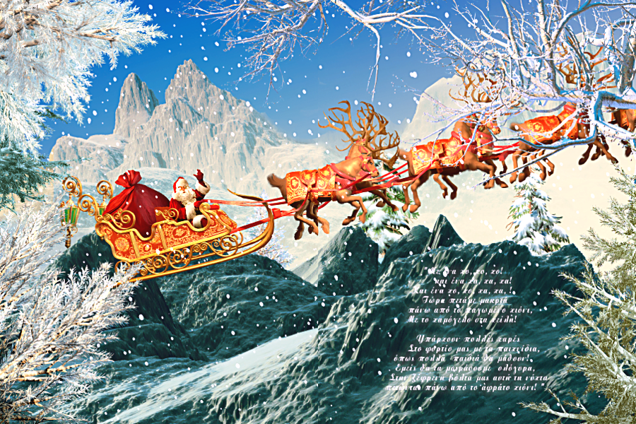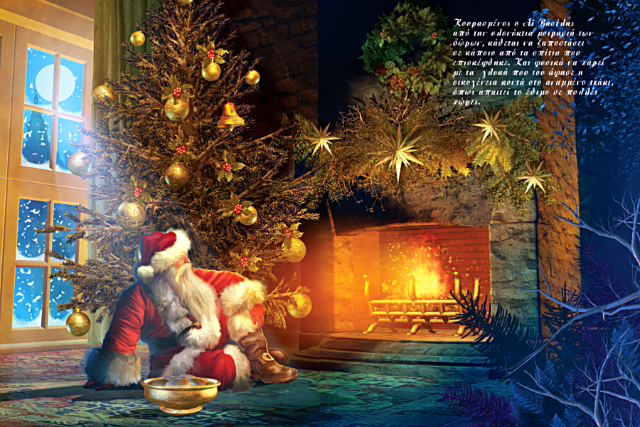 Είναι χειμώνας και η ανθρωπότητα ετοιμάζεται να γιορτάσει την γέννηση του Χριστού και τον ερχομό του Νέου Έτους. Μικροί και μεγάλοι προσμένουν την επίσκεψη του Άγιου Βασίλη. Μέσα από υην πλούσια εικονογράφηση του βιβλίου ελάτε να γνωρίσουμε λίγο καλύτερα τον θρυλικό γέροντα των Χριστουγέννων που ταξιδεύει με τους τάρανδούς του στον νυχτερινό ουρανό και φέρνει αμέτρητα δώρα και χαρά στα παιδιά όλου του κόσμου. Περιέχει τα κάλαντα των Χριστουγέννων και της Πρωτοχρονιάς και δώρο ένα τριγωνάκι.