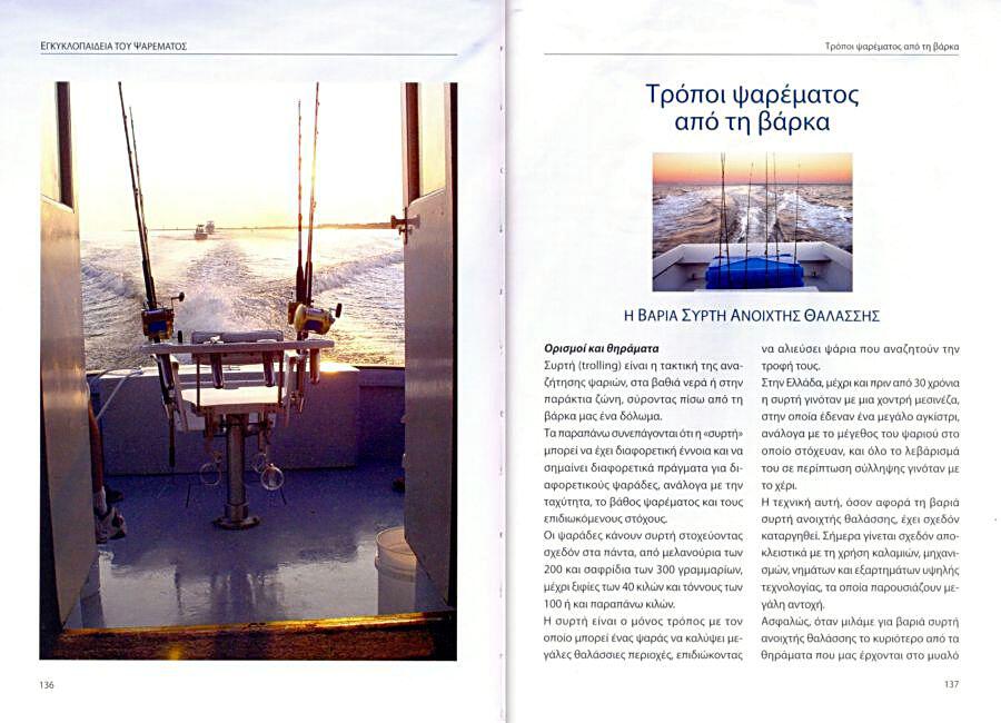 Το βιβλίο αυτό είναι ένας πλήρης οδηγός που παρουσιάζει για πρώτη φορά στην Ελλάδα όλα τα μυστικά του ψαρέματος. Γραμμένο κατανοητά, από ανθρώπους με μεράκι, γνώσεις και πολυετή εμπειρία στο αντικείμενο, καλύπτει τις απαιτήσεις τόσο του απλού ερασιτέχνη όσο και του απαιτητικού ψαρά. Παρουσιάζονται τρόποι ψαρέματος από την ακτή ή τη βάρκα και γίνεται εκτενής αναφορά στον απαραίτητο εξοπλισμό και στα δολώματα που χρησιμοποιούνται σε κάθε τεχνική. Επίσης, ξεχωριστή αναφορά γίνεται στην υποβρύχια αλιεία.
