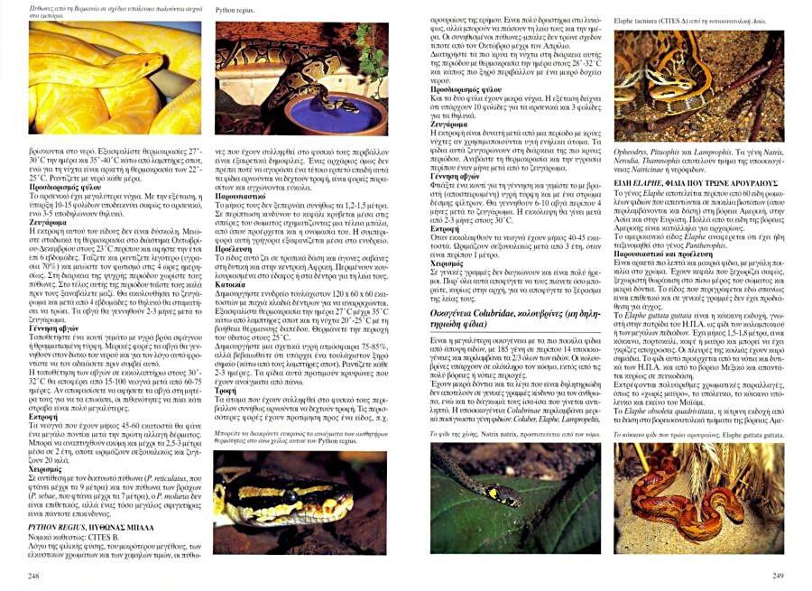 Αυτή η απαραίτητη εγκυκλοπαίδεια για τους κατόχους ερπετών περιλαμβάνει, μεταξύ άλλων, πληροφορίες αναγκαίες για τα παρακάτω: Ερπετά (σαύρες, φίδια, χελώνες, ιγκουάνα κ.α. Αμφίβια (βάτραχους, φρύνους και σαλαμάνδρες). Αραχνοειδή (πάνω από 100 είδη αραχνών). Έντομα (αλογάκια της Παναγιάς, σκαθάρια, ακρίδες, πεταλούδες, περισσότερα από 100 έντομα των κοτσανιών και πολλά άλλα).