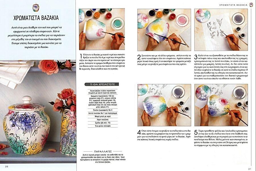 Το τέλειο, γρήγορο χειροτέχνημα -για οποιονδήποτε με ή χωρίς ζωγραφικές ικανότητες- χωρίς χρήση καμινιού ή άλλου ειδικού εξοπλισμού. 20 υπέροχες ιδέες βήμα προς βήμα και επιπλέον ένας πλούτος δημιουργικών ιδεών για ζωγραφική σε μια ευρεία ποικιλία πορσελάνινων σκευών. Παρουσιάζει εύκολες τεχνικές για μοναδικά αποτελέσματα σε μοντέρνα αλλά και πιο παραδοσιακά σχέδια. Εύκολοι τρόποι για να δημιουργήσετε όμορφα κεραμικά για δώρα ή για να διακοσμήσετε τα ήδη υπάρχοντα κεραμικά σας και να δώσετε μια φρέσκια νέα όψη στο σπίτι σας.
