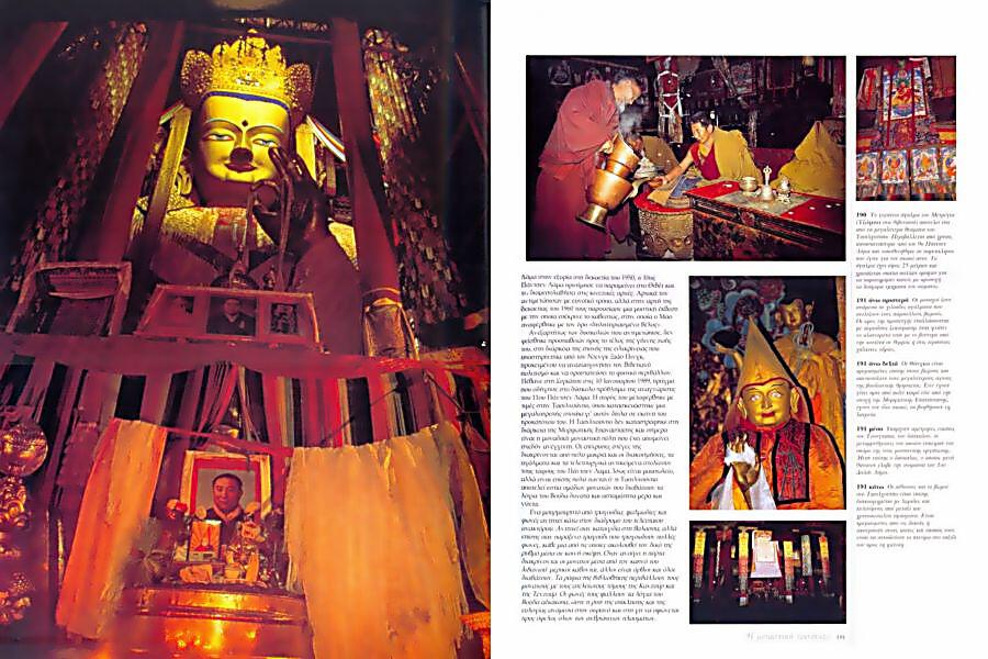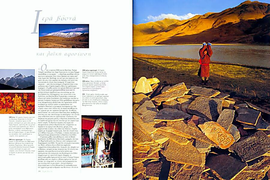 Υπέροχα βουνά που αχνοφέγγουν στον πάγο, έρημοι σε μεγάλο υψόμετρο, όπου είναι διασκορπισμένα γιακ και νομάδες, μαγευτικά μισοερειπωμένα μοναστήρια, ατελείωτες αποστάσεις και γέφυρες πάνω από ποτάμια που στριφογυρίζουν ανάμεσα στα βουνά, εισάγουν τον αναγνώστη στη «χώρα την οποία στολίζουν τείχη από βουνά σκεπασμένα με χιόνι», για να χρησιμοποιήσουμε τον ορισμό των ίδιων των Θιβετιανών. Στα μάτια των δυτικών, το Θιβέτ συνήθως φαίνεται σαν ένα είδος υπέροχα απομονωμένου φρουρίου, ανέγγιχτου από τον χρόνο, που έχει αποσυρθεί πίσω από τα Ιμαλάια – μια υπέροχη, μυθική, αμετακίνητη, σχεδόν αμετάβλητη χώρα.