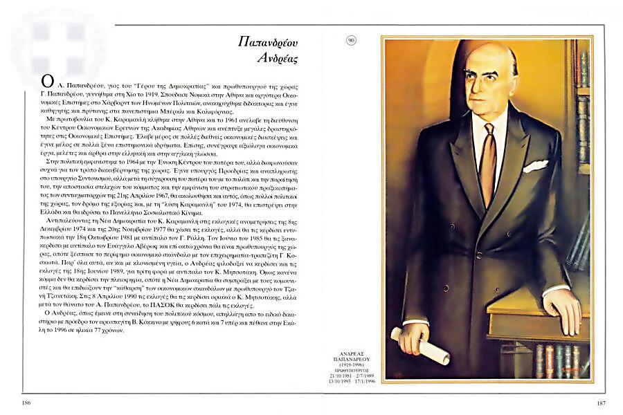 Αυτό το εικαστικό έργο αναφέρεται αποκλειστικά στην πολιτική σκυταλοδρομία των πρωθυπουργών της χώρας μας όπου εμφανίζονται όλοι οι διατελέσαντες κατά χρονολογική σειρά. Περιλαμβάνει όλα τα πορτρέτα από τον πρώτο κυβερνήτη Iωάννη Καποδίστρια μέχρι και τον Κώστα Καραμανλή, φιλοτεχνημένα με λάδι σε μουσαμά από τον Χρήστο Μπάκα.