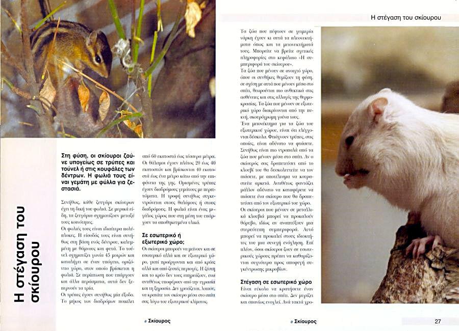 Ένας οδηγός για την επιλογή, τη στέγαση, τη φροντίδα, τη διατροφή, τη συμπεριφορά, την υγεία και την εκτροφή του σκίουρου καθώς και αναφορά στα διάφορα είδη του.