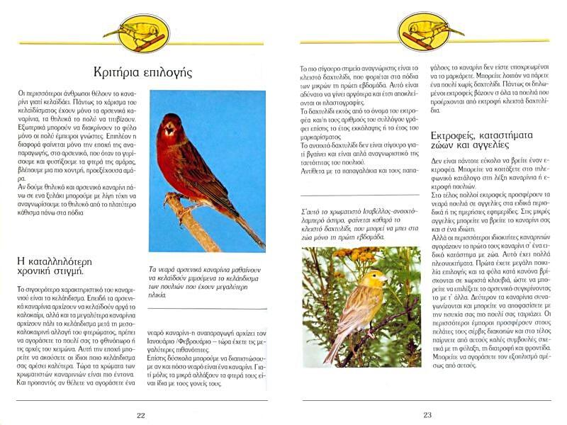 Εδώ και πολλές γενιές φροντίζουμε τα καναρίνια και χαιρόμαστε το κελάιδισμά τους. Στο μεταξύ τα καναρίνια εκτρέφονται σε μια πληθώρα χρωμάτων με τα διαφορετικότερα φτερωτά φορέματα. Αλλά για να μπορείτε να έχετε και να φροντίζετε αυτά τα δραστήρια πουλιά πρέπει να πληροφορηθείτε οπωσδήποτε για τα εξής: Ποια σημαντικά κριτήρια υπάρχουν για την επιλογή τους; Ποια είναι η σωστή φύλαξη και φροντίδα; Πώς θα εξοικειωθεί το πουλί; Τι να κάνω αν το καναρίνι αρρωστήσει; Ο Χάιντς Σνόορ, που είναι εκτροφέας και πεπειραμένος εθνικός και διεθνής κριτής, απαντάει με αρμοδιότητα σε πολλά ερωτήματα που θα παρουσιαστούν στην πράξη.