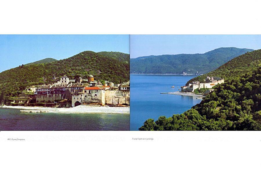 Το βιβλίο αυτό παρουσιάζει το Άγιο Όρος σε όλο του το μεγαλείο. Ξεκινάει με την ανάλυση της πολιτιστικής και πνευματικής ιστορίας του, εξηγώντας την ύπαρξή του στο παρελθόν και το παρόν. Ακολουθεί η ιστορία της μοναστικής κοινωνίας, της τέχνης και της αρχιτεκτονικής της. Τέλος, στο μεγαλύτερο μέρος του, περιγράφει με μοναδικό τρόπο όλα τα μοναστήρια του Αγίου Όρους. Το κάθε μοναστήρι παρουσιάζεται με κείμενα, πολλές έγχρωμες φωτογραφίες και αυθεντικούς χάρτες. Επίσης, αναλύει την ιστορία τους και περιγράφει την αρχιτεκτονική και τους ανεκτίμητους θησαυρούς τους.