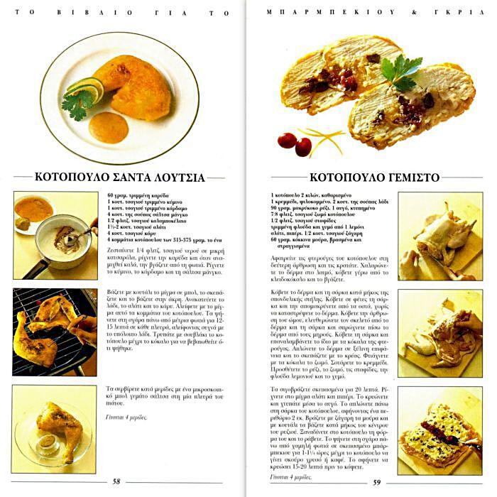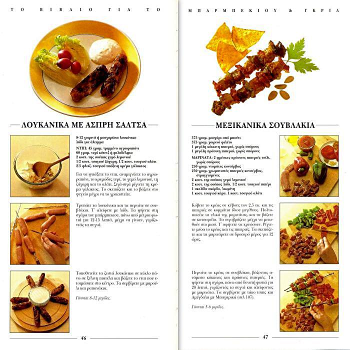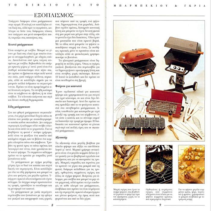 Ένα πολύτιμο βοήθημα κάθε νοικοκυράς στο ψήσιμο και την παρουσίαση των δημοφιλέστερων συνταγών για Μπάρμπεκιου και Γκριλ, που η κάθε μία παρουσιάζεται βήμα – βήμα με έγχρωμες φωτογραφίες.