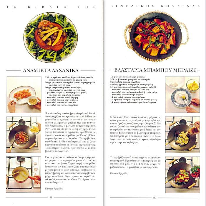 Ένα πολύτιμο βοήθημα κάθε νοικοκυράς στο μαγείρεμα και την παρουσίαση των δημοφιλέστερων συνταγών μαγειρικής και ζαχαροπλαστικής της Κινεζικής κουζίνας, που η κάθε μία παρουσιάζεται βήμα – βήμα με έγχρωμες φωτογραφίες.