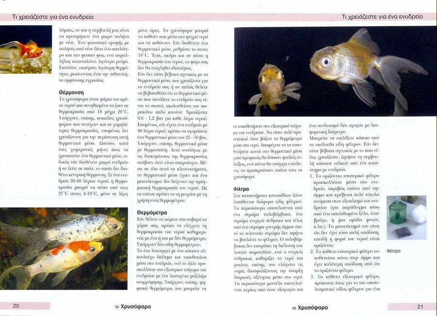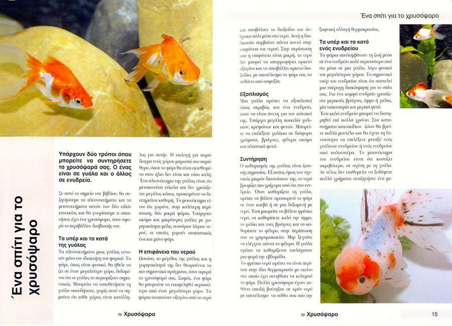 Όλα όσα θέλετε να ξέρετε για τα χρυσόψαρα. Πλήρες , η επιλογή, η στέγαση, η φροντίδα, η διατροφή, η συμπεριφορά, η υγεία, η εκτροφή και πολλά άλλα. Περιλαμβάνονται επίσης χρήσιμες διευθύνσεις και συμβουλές.