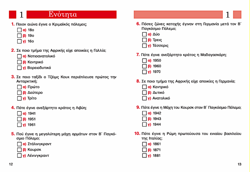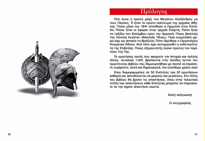 Ένα βιβλίο με 1000 κουίζ γνώσεων ιστορίας για µικρούς και µεγάλους, που θα σας κρατήσει συντροφιά στον ελεύθερο χρόνο σας, θα σας διασκεδάσει δηµιουργικά και θα σας πληροφορήσει ευχάριστα!