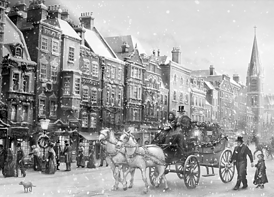Σε αυτό το μικρό φαντασματο-βιβλίο, όπως το χαρακτηρίζει ο δημιουργός του, ο Ντίκενς διηγείται την ιστορία του τσιγκούνη Εμπενίζερ Σκρουτζ, γνωστού για τη φράση «Μπα! Μπαρούφες!», που ξεστόμιζε αμέσως μόλις άκουγε να γίνεται λόγος για τα Χριστούγεννα. Κι όμως, όλη του η ψυχρότητα, η μοχθηρία και η φιλαργυρία εξανεμίστηκαν μέσα σε ένα βράδυ· ένα μαγικό βράδυ παραμονής Χριστουγέννων, όταν δέχτηκε, θέλοντας και μη, τρεις πολύ ξεχωριστούς επισκέπτες, που του έφεραν για δώρα μερικά σημαντικά μαθήματα ζωής..