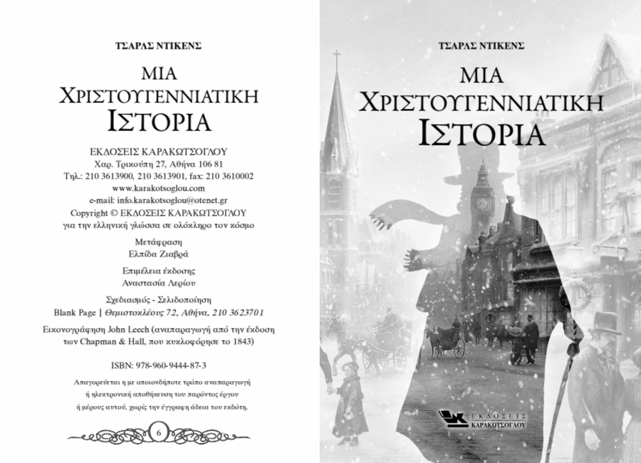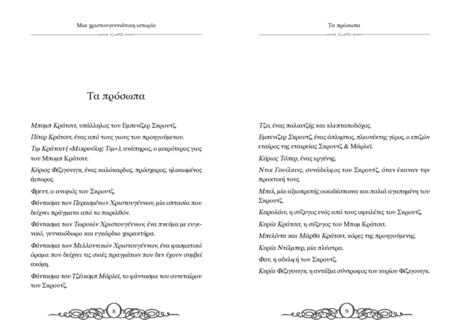 Πώς γίνεται ένας γεροπαράξενος που λατρεύει το χρήμα και περιφρονεί τα Χριστούγεννα να αλλάξει και να γίνει ο πιο μεγάλος οπαδός της γιορτής, αλλά και ο πιο φιλάνθρωπος, αγαπησιάρης και κεφάτος άνθρωπος στο Λονδίνο; Και μάλιστα, μέσα σε μία μόνο νύχτα; Δίχως αμφιβολία, ένα τέτοιο θαύμα ξεπερνάει τόσο πολύ τα ανθρώπινα μέτρα, που μόνο ένα ον –ή μήπως τρία;– από το υπερπέραν θα μπορούσε να το πραγματοποιήσει. Σε αυτό το μικρό φαντασματο-βιβλίο, όπως το χαρακτηρίζει ο δημιουργός του, ο Ντίκενς διηγείται την ιστορία του τσιγκούνη Εμπενίζερ Σκρουτζ, γνωστού για τη φράση «Μπα! Μπαρούφες!», που ξεστόμιζε αμέσως μόλις άκουγε να γίνεται λόγος για τα Χριστούγεννα. Κι όμως, όλη του η ψυχρότητα, η μοχθηρία και η φιλαργυρία εξανεμίστηκαν μέσα σε ένα βράδυ· ένα μαγικό βράδυ παραμονής Χριστουγέννων, όταν δέχτηκε, θέλοντας και μη, τρεις πολύ ξεχωριστούς επισκέπτες, που του έφεραν για δώρα μερικά σημαντικά μαθήματα ζωής. Έτσι, με τη βοήθεια τριών φαντασμάτων, ο Σκρουτζ κατάφερε να σώσει την ψυχή του.
