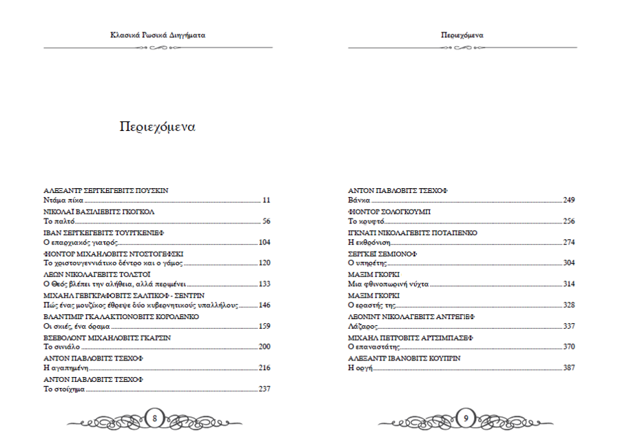 Στην ανθολογία αυτή παρουσιάζεται μια πλούσια συλλογή  της ρωσικής λογοτεχνικής παράδοσης, με χαρακτηριστικά δείγματα των κορυφαίων Ρώσων λογοτεχνών, που αξίζει να εξερευνήσετε.